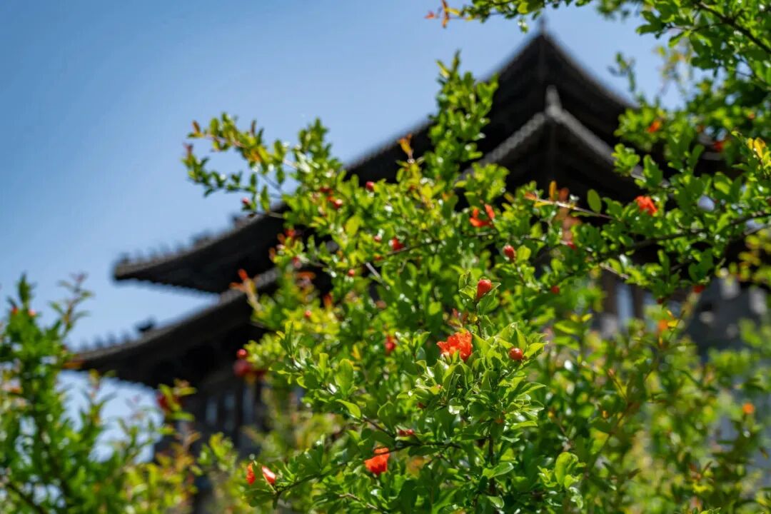 #美境游赏不肯染时轻着色,却将密绿护深红当大运河文化旅游度假区内的绿意越来越浓有一种花儿开得正艳火红的颜色,喇叭似的花型妥妥的高颜值这种花便是石榴花漫步大运河文化旅游度假区内的宋夹城石榴花藏在绿叶丛中一朵朵,一簇簇明艳如霞,好像在“燃烧”“微雨过,小荷翻,榴花开欲燃。”石榴为石榴科石榴属在中国栽培历史久远可上溯至汉代据记载是张骞从西域引入其花语为成熟的美丽 、富贵和子孙满堂在中国传统文化中石榴被视