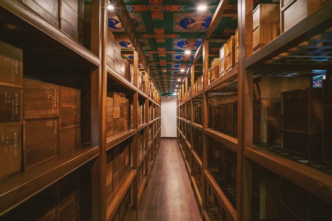 乾隆四十五年 (1780),文汇阁在扬州天宁寺皇帝行宫内横空出世。如今,在扬州大运河文化旅游度假区,我们置身重建后的文汇阁,它东距文汇阁原址仅约百米。区区百米,仿佛一条时空隧道,幽长深邃,贯通古今。“上一层左子右集,子书面用玉色绢,集用耦合色绢。其书帙多者用楠木作函贮之。”——《扬州画舫录》2023年1月7日,《四库全书》入库。金丝楠木的书架上,整齐排列着一只只厚重的书函,在透过窗棂的细碎阳光下,