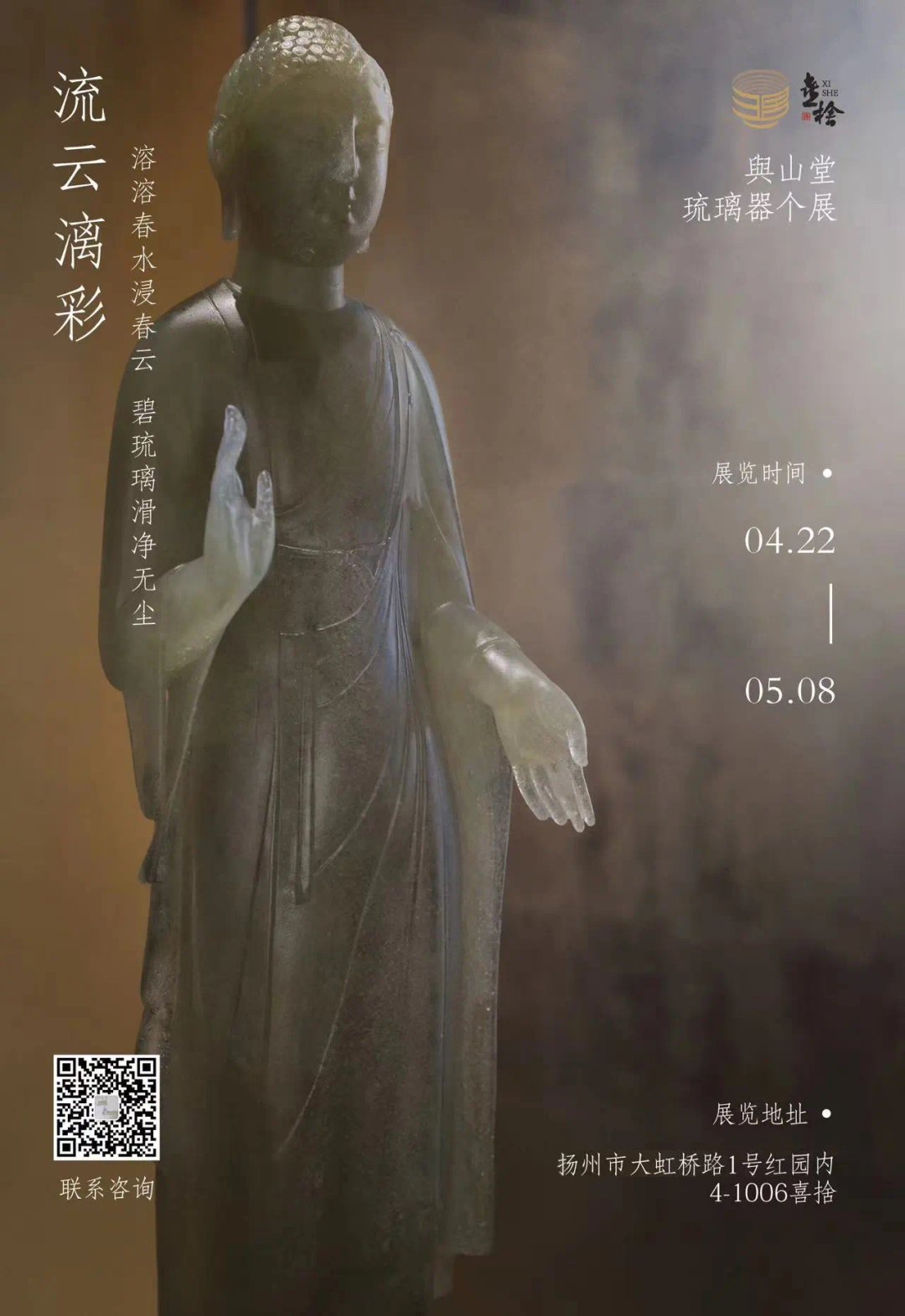 #美韵体验「喜捨|流云漓彩 與山堂琉璃器个展」溶溶春水浸春云,碧琉璃滑净无尘。展览时间2024.04.20-2024.05.08工作日:10:00-17:30展览地址大运河文化旅游度假区大虹桥路1号红园内4号楼4-1006喜捨茶空间展览品牌與山堂的诞生源于创始人高俊杰的朴素心愿——将琉璃材料由实验室带入日常生活。工业化普及使大家习惯清透明亮的玻璃制品,而同源而出的国内琉璃,则面临着审美老旧,铸造烧